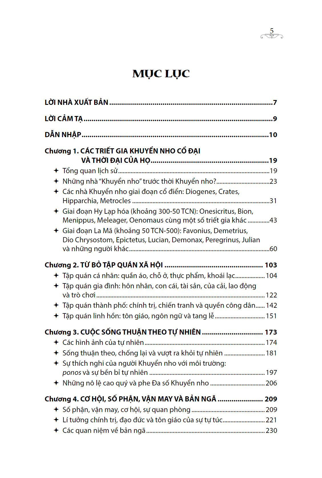 Cuốn sách giới thiệu về chủ nghĩa Khuyển nho, có khảo sát cả những tư liệu cổ còn sót lại về các nhà Khuyển nho lẫn những diễn giải lịch sử đã định hình nên học thuyết này trong nhiều thế kỷ – từ chính Diogenes cho tới Nietzsche và xa hơn nữa, giúp người đọc nhận diện bức tranh tổng thể về nguồn gốc, tư tưởng, lối sống và ảnh hưởng của các nhà Khuyển nho như Diogenes, Crates, Hipparchia, Epictetus.