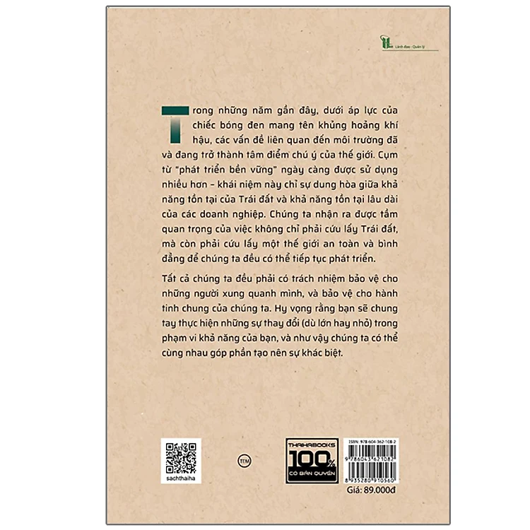 Cuốn sách này là cánh cửa dẫn vào một đề tài đang biến động rất nhanh, vì thế bây giờ nó đã được cập nhật kỹ lưỡng bằng những thông tin mới. Nhiệm vụ của cuốn sách là trang bị kiến thức ban đầu cho độc giả về tất cả những khía cạnh quan trọng liên quan đến việc thực hành kinh doanh bền vững và có đạo đức, nhưng nó sẽ được trình bày hết sức cô đọng và súc tích.