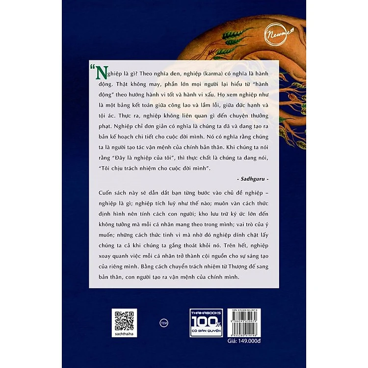 Hy vọng cuốn sách này sẽ vừa là một tài liệu tham khảo, vừa là một cẩm nang cung cấp cho độc giả những bí quyết sống một cách sáng suốt và yên vui trong thế giới nhiều thách thức này. Trong quá trình đó, cuốn sách cố gắng khôi phục lại tiềm năng chuyển hóa nguyên bản của từ “nghiệp”. Mong rằng cuốn sách sẽ tháo gỡ những hiểu lầm đang ngày càng lớn dần, đồng thời giúp bạn hiểu rõ toàn bộ sức mạnh ban sơ của nghiệp cũng như tác động cộng hưởng mãnh liệt của nó.