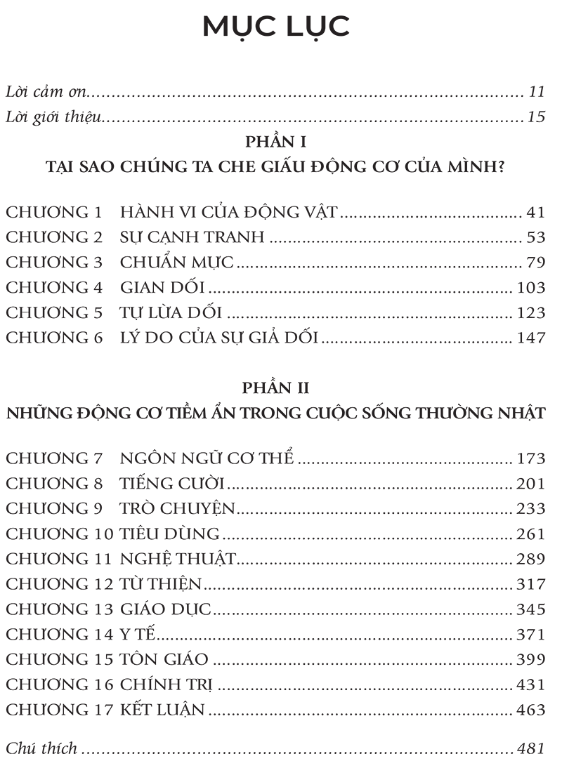 Tuy nhiên, càng ngó lơ những toan tính nội tâm, chúng ta càng mù mờ trong việc thấu hiểu bản chất và hành vi của người khác và của chính mình. Vì thế, cuốn sách này ra đời để đối diện với những toan tính ấy – lần theo, khám phá những góc khuất và soi rọi những động cơ tâm lý phức tạp của con người. Tại sao chúng ta cười? Tại sao các nghệ sĩ phải ăn mặc gợi cảm? Tại sao chúng ta thích được nói hơn lắng nghe?
